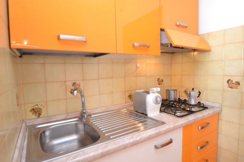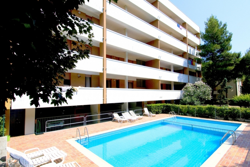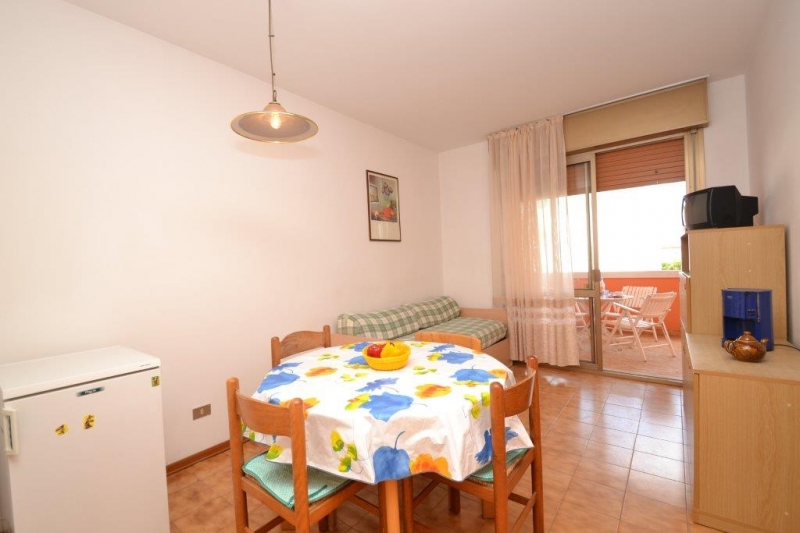 apartmán typu bilo, vhodný pro max 4 osoby, 100m od moře. Dvoupokojový apartmán s ložnicí (manželská postel a samostatné lůžko), obývací pokoj s kuchyňským koutem a rozkládacím gaučem, balkon, výtah, klimatizace, společná pračka, TV - satelit, bazén, WiFi