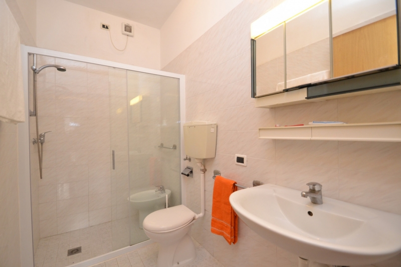 apartmán typu bilo, vhodný pro max 5 osob, 300 m od moře. Dvoupokojový apartmán s ložnicí (manželská postel a samostatné lůžko), obývací pokoj s kuchyňským koutem a rozkládacím gaučem pro 2 osoby, balkon, klimatizace, mikrovlnná trouba, TV - satelit, společná zahrada, WiFi