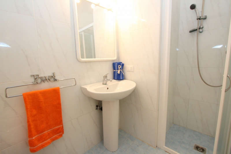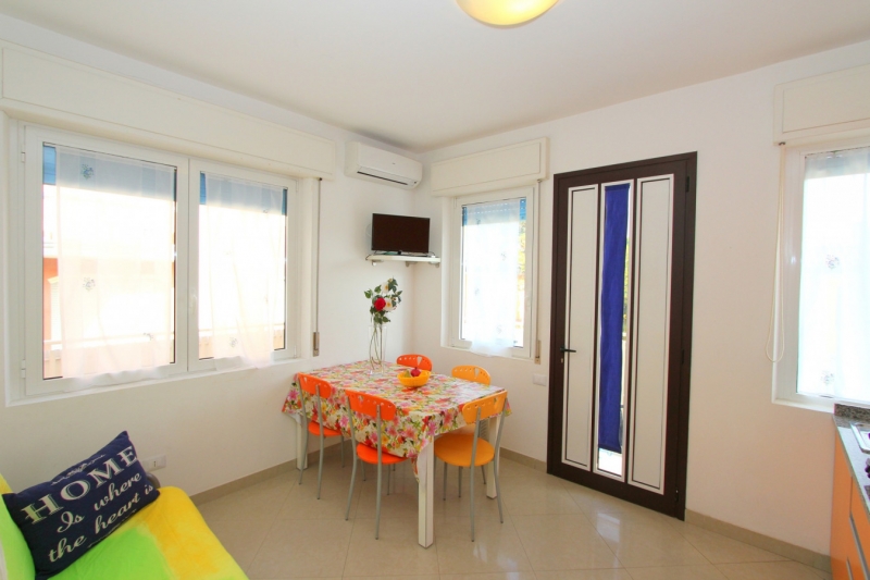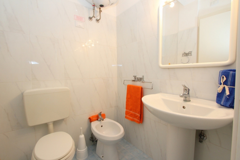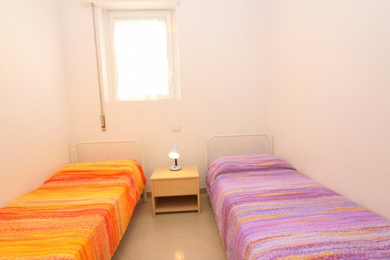 apartmán typu trilo, vhodný pro max 5 osob, 80m od moře. Třípokojový apartmán - obývací pokoj s kuchyňským koutem a rozkládacím gaučem, 2 ložnice s manželskou postelí, balkon, klimatizace, TV.