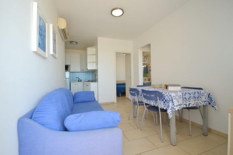 apartmán typu trilo, vhodný pro max 5 osob, přímo na pláži. Třípokojový apartmán - obývací pokoj s kuchyňským koutem a rozkládacím gaučem, ložnice s manželskou postelí, ložnice se 2 oddělenými lůžky, balkon, klimatizace, výtah, trezor, bezpečnostní dveře, mikrovlnná trouba, TV - satelit.